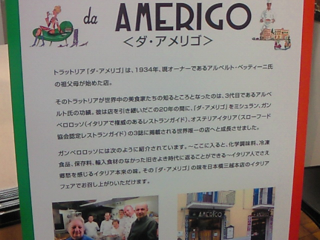 日本橋三越本店で「三越イタリアフェア」というのをやっているというので行って来ました。いやー、なかなか盛況でしたねー。kokもサラミやらピザやらいろいろ食材を買ってしまいましたよ。